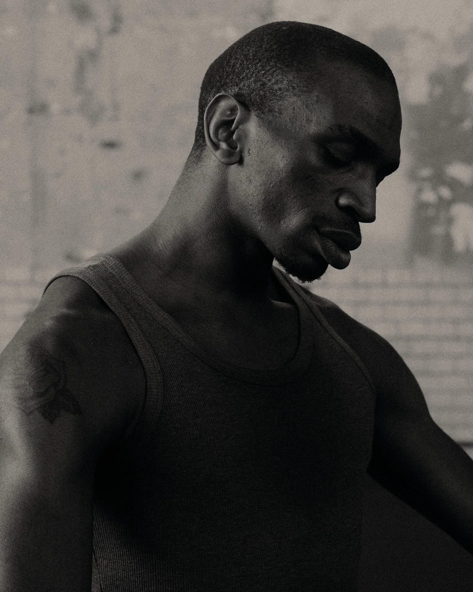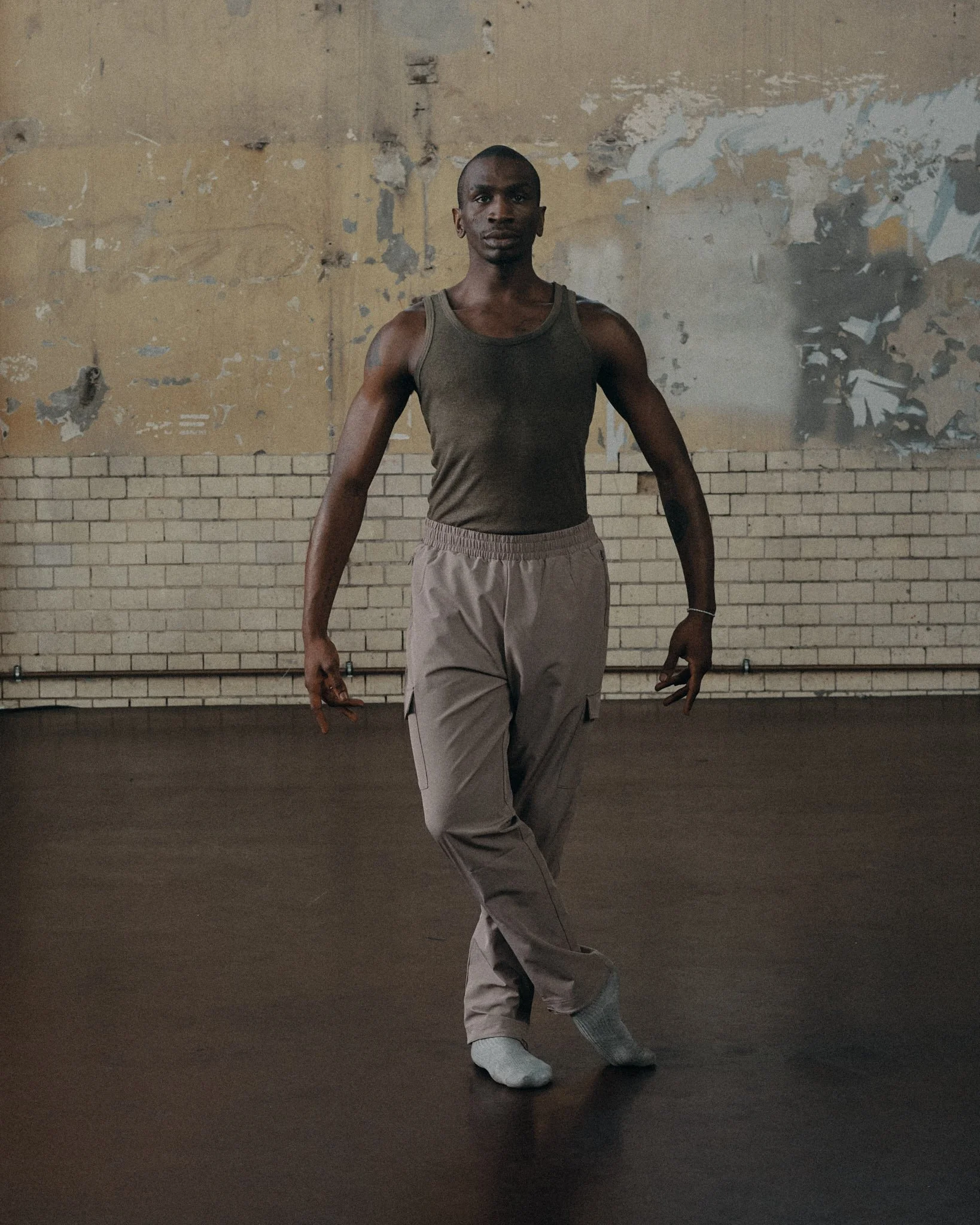minimalist photograph beautiful black dancer in front of concrete wall in berlin germany